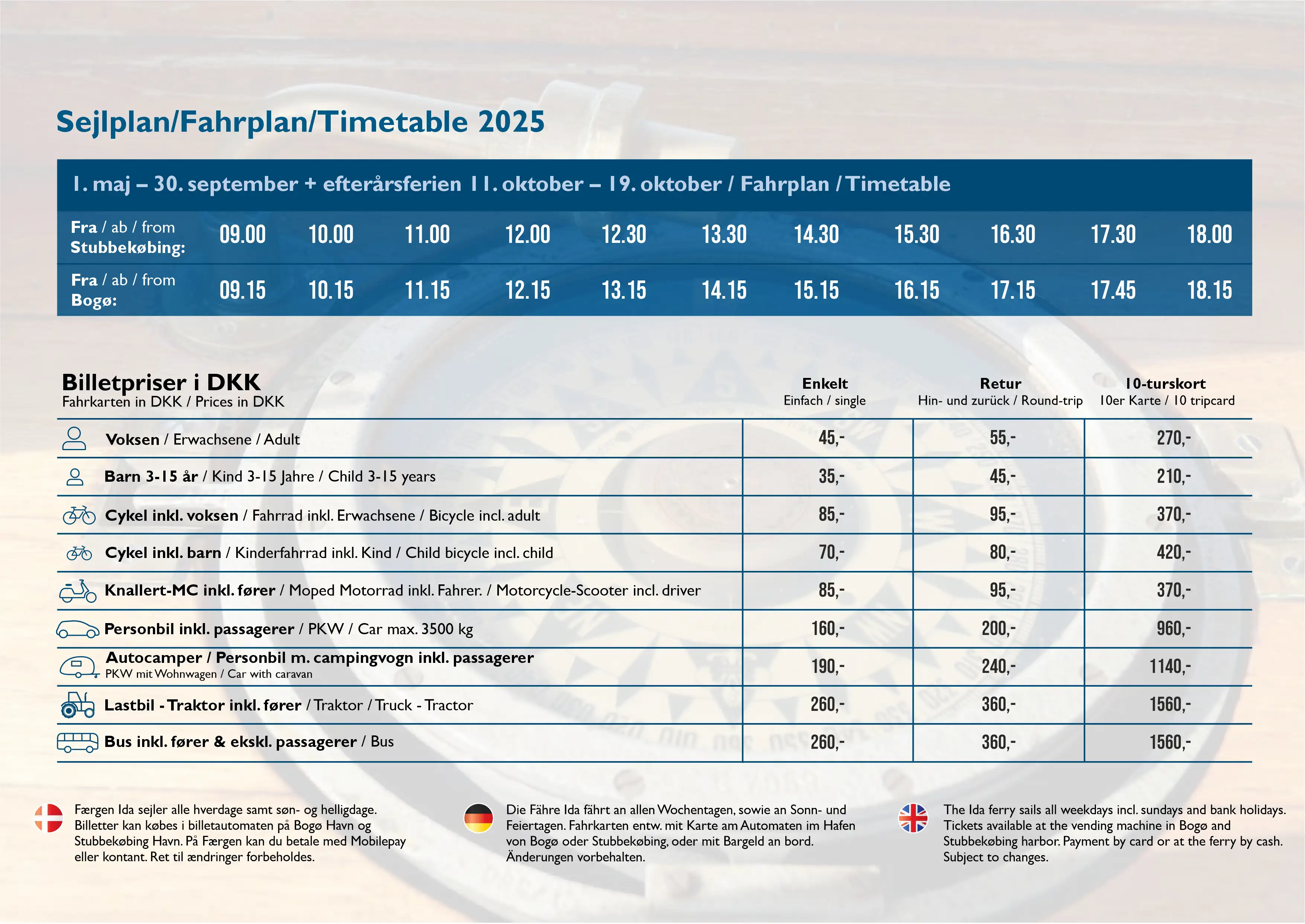 Sæson 2025 er slut og Færgen Ida holder pause indtil 1. maj 2026 - vi glæder os til at se jer!
